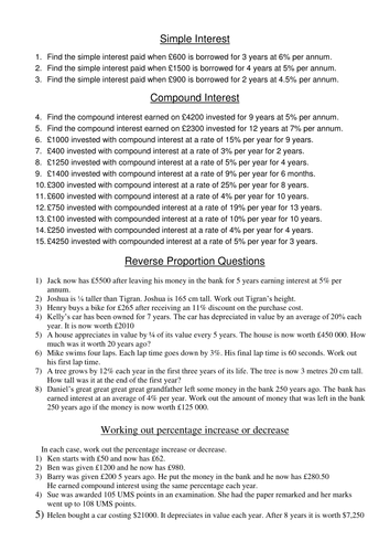 Find the simple interest for 2 years on $2000 at 6% per year. 20 scaffolded questions that start relatively easy and end with some real challenges. Simple & compound interest pound interest practice worksheet 1. George invests $800 in an account which pays 20% compound interest per 09.01.2018 · simple interest and compound interest multiple choice questions and answers. Use the formula a = p(1 + ) nt where a represents the total amount, p nrepresents the principal, r represents the interest rate as a decimal, n represents thenumber of times per year interest is compounded.